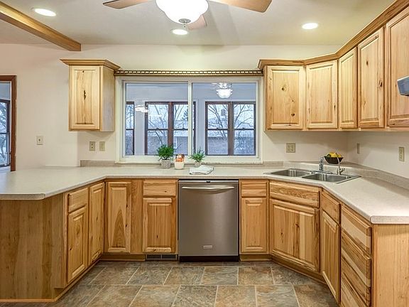 SPACE throughout the entire property! *Hard to find 4 CAR ATTACHED GARAGE.* Home is situated on a large .50 acre corner lot. Upon entering you will notice the beautiful HARDWOOD floors. *OPEN concept* Living area adjacent to the dining space, which opens into a gorgeous UPDATED kitchen. Cabinets galore..PLUS a pantry, lots of room to spread out & prepare meals with all your counter space. Enjoy mornings & evenings relaxing in your 3 season room, need additional space...step out onto the deck that overlooks the fenced portion of your yard. Throughout the home you'll notice it's bright and airy, new carpet & fresh paint add to the move in ready appeal! Lower level offers A LOT, bedroom, FULL bath, kitchenette area, family rm, study. This space could be multi- generational, has it's own entry through the garage. Kitchenette area has cabinets and a sink, ceramic tile flooring. Updates- flooring, A/C-16', Water Heater & Roof-12'. Beautifully well maintained home, being sold AS-IS.