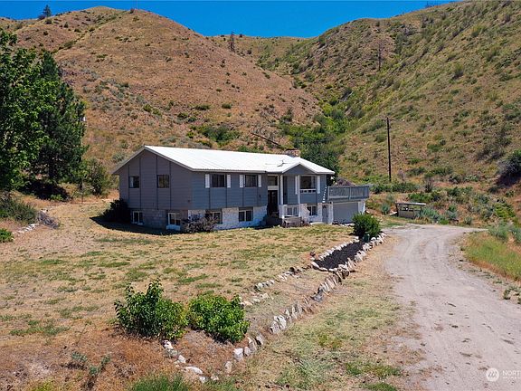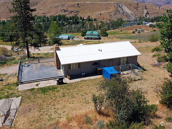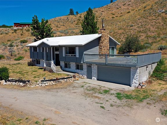 This magnificent Methow Valley 5 bed/2 bath retreat offers over 2,600 sq. ft of luxurious living space on 14.5 acres, with breathtaking valley views. The open-concept main living area features a custom rock fireplace and vaulted ceilings, leading to a rooftop deck perfect for enjoying the panoramic scenery. The upper level includes a serene primary bedroom with private patio access and two additional bedrooms, while the downstairs boasts two more spacious bedrooms, a cozy fireplace, a full bath, a wet bar, and attached garage access. Recent updates include fresh paint, new carpet, a new heat pump, and some brand new kitchen appliances. This exceptional home is a unique Methow Valley gem.