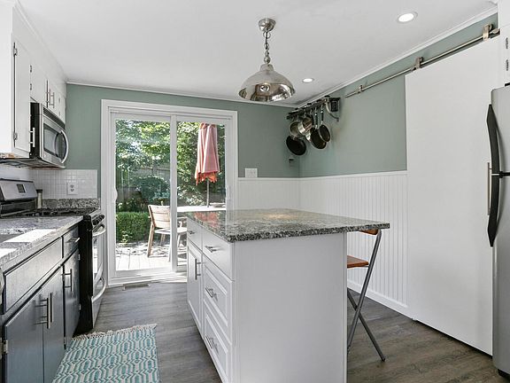 The open living/dining area, with wood floors through is warm and inviting. The renovated kitchen with center-island has sliders that lead to a large attached deck great for outdoor entertaining. There are also two nicely sized bedrooms, one with attached half bath, and updated full bath on the homes main floor. The finished basement area provides additional living space and can is accessed both through the home's interior and exterior. If you like to putter in the garden you will love this property! The home is nicely sited amongst the beautifully landscaped yard and offers a front porch, large rear deck and patio. PLEASE ALL APPLICATION MUST BE SUBMITTED THROUGH ZILLOW The lease length of this pet friendly unit is actually quite flexible, it varies from month to month, 3 months, 6 months and up to a year (which can also be extended further). Utilities included in the rent are Water, Heat, Trash, Cable, Electricity and Strong Internet (Xfinity High Speed Internet Service with an Average speed of about 36Mbps as recently tested). PLEASE APPLY THROUGH ZILLOW.