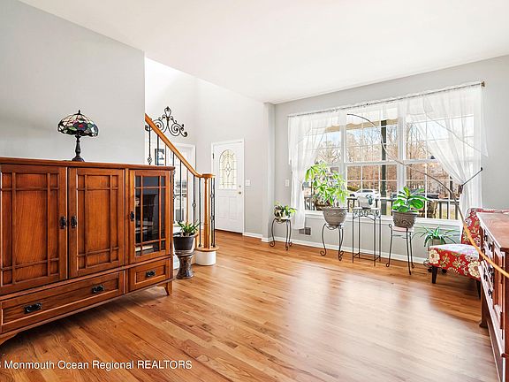 See what genuine pride of ownership means in this beautiful Colonial set upon an idyllic 1.6-acre wooded setting in Jackson. Whether it's the freshly refinished hardwood floors, the magnificent kitchen backsplash, or the well-manicured grounds, you'll delight your senses at first sight. A bright, open floor plan further sets the tone for that at-home comfort feeling you've always sought. The expansive Living & Dining rooms are joined for entertaining pleasures, as are the large Eat-in Kitchen and Family Room that share the crackle of the wood-burning fireplace. Lush carpets grace each of the spacious bedrooms, but the Primary Suite holds the best secret: a private, sun-filled room nestled in the front corner of the home that lends itself to multiple uses. Completing the design is a large first-floor office, laundry, a full basement, and a 2-car garage. Lastly, enjoy outdoor get-togethers on the recently refurbished, expansive deck while you soak in the ambiance and the natural beauty of the Pinelands setting.