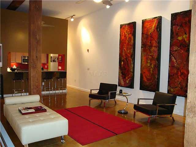Gorgeous ground flr condo w/private Entry off courtyd*Dramatic 14'ceilings*Orig.brick walls,heavy posts+Beams*35x16 LR/DR*Huge Den/Media rm+Guest/bonus rm dwn*Historic warehouse conversion*Gated assigned parking,extra storage,$185/mo HOA*Rare opportunity!