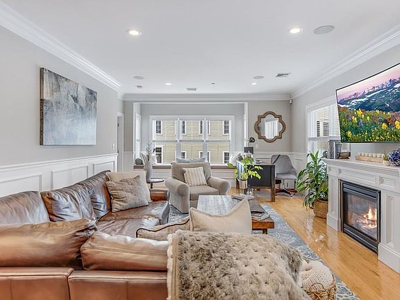 Find this beautiful and bright 2 bedroom, 2 bathroom condo in South Boston that also offers a garage parking space. This spectacular 4 unit building was built in 2015 with tall ceilings and crown molding. Offering over 1,100 square feet of living space with hardwood floors throughout and in-unit laundry. The kitchen has all stainless steel, Jenn-Air appliances. The open living room is centered around the gas fireplace with a custom built mantel along with surround sound that can be controlled room by room. Enjoy the outdoor space on your roof deck with stunning city views. Located in the middle of South Boston, you will have access to all the community has to offer!