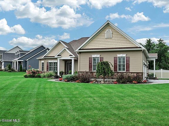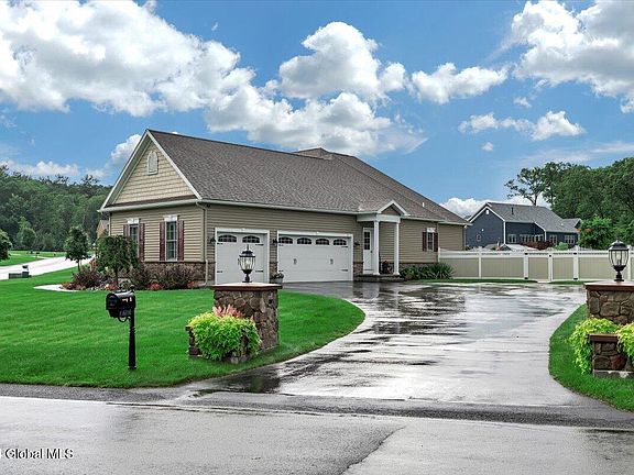 Welcome to 2 Gabby Court! This 8 year young large corner lot ranch has been meticulously maintained and designed with upgrades galore! Custom built with Charlew Builders. Two large primary suites with walk-in closets. Gourmet kitchen with granite counter tops, built-in features, industrial stove and hood and tons of storage. Hardwood floors throughout. Plantation shutters on all windows. 3 car finished garage with heat. Hardwired exterior lighting. Gorgeous landscaping wrapping the exterior. Back covered porch area looking out to a natural gas firepit and custom fountain. Shed finished to match the home. Scallop vinyl fence along the perimeter and stamped concrete walkway. Full basement has 8ft ceilings and is ready to be finished if desired. This home is truly a must-see!