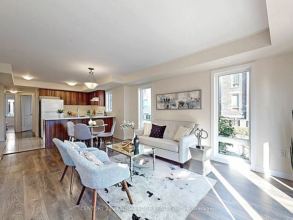 Welcome to Grand Cornell Brownstones Phase II! A rarely offered end unit, this beautiful living space is filled with three walls of natural light. This absolutely stunning unit boasts 2 bedrooms and 2 full washrooms. Spacious and functional open concept living and dining with a lovely patio walkout. Sparkling kitchen comes with ample storage and a large breakfast bar. Primary bedroom features a 4-pc ensuite and large closet. Upgraded laminate flooring throughout. Buffered away from busy roads, your quiet enclave is just steps to walking trails and stunning parks, minutes to Cornell Bus Terminal, Cornell Community Centre & Library, Markham-Stouffville Hospital, Hwy 407, Walmart, Longo's Plaza & Markville Mall shopping. Here is your opportunity to enjoy it all!