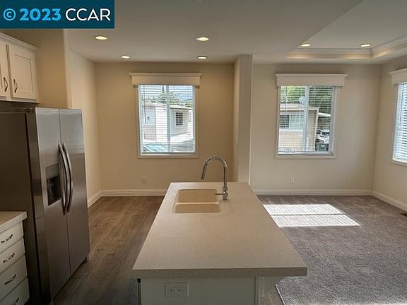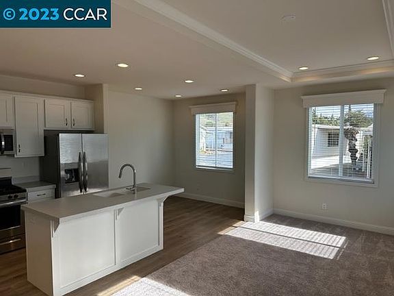 Beautiful Brand New 3 Bedroom 2 Bath Home in Concords Finest Mobile Home Park. This Home Features Carpeted Living Room and Bedrooms with Vinyl Plank Flooring in the Kitchen and Breakfast Area. Stainless Steel Appliances Round out the Gourmet Kitchen with Large Center Island. A Real Great Room Feel with 9 foot Ceilings and Canned Lighting all open to the Eating Area. The Indoor Laundry will accommodate either Gas or Electric Appliances. Central Heat and Air will keep you cool in the Summer and Toasty in the Winter. There is room for 2 cars in the Covered Carport. The Park offers 2 Pools, 2 Clubhouses, a Common Laundromat and a Car Wash Area. Close to Shopping, Schools & Transportation. Don't miss this Great Opportunity.
