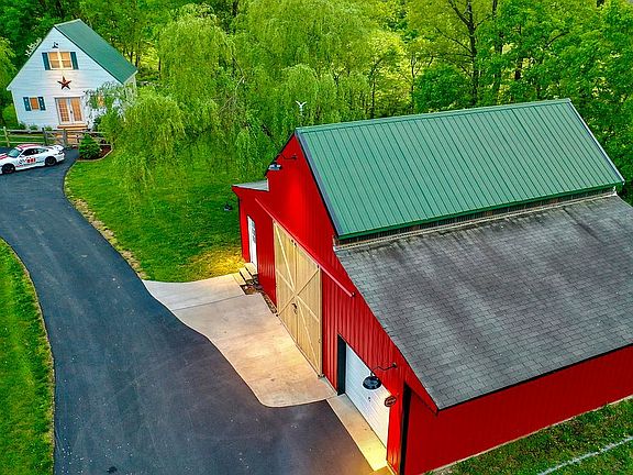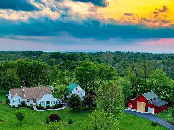 3.5 pristine acres surround this beautiful Rancher, located just minutes from the WV/VA State line for easy commuting. This well maintained home offers nearly 3000 square feet of finished living area, a separate 2-level studio for hobbies or art, and a large pole barn with center bay for RV or boat storage, attached workshop, and additional garage space. Original owner is relocating. Offered are 3 BRs + den, 3 BAs, and numerous amenities, including open floor plan, hardwood floors, cathedral ceilings, brick and gas fireplaces, kitchen with island and breakfast nook, and separate dining room with bay window. The master bedroom features his and hers walk-in closets, ensuite tiled bath with large soaking tub, double vanity, and separate sit-in shower. The mostly finished walk-out basement boasts a large family/rec room, office nook, den, full bath, and enough unfinished area for storage. Pastoral views can be enjoyed from both the rear deck (trex) and front porch. Many fruit, flowering, and evergreen trees, garden trellis, patio, garden space, and a fenced puppy yard complete the picture. The studio is climate controled, with low-e windows, propane stove and window A/C to protect artwork and crafts. Added in the year 2000, the Pole Barn can be considered the perfect 'man cave', with enough room to store those important toys.
