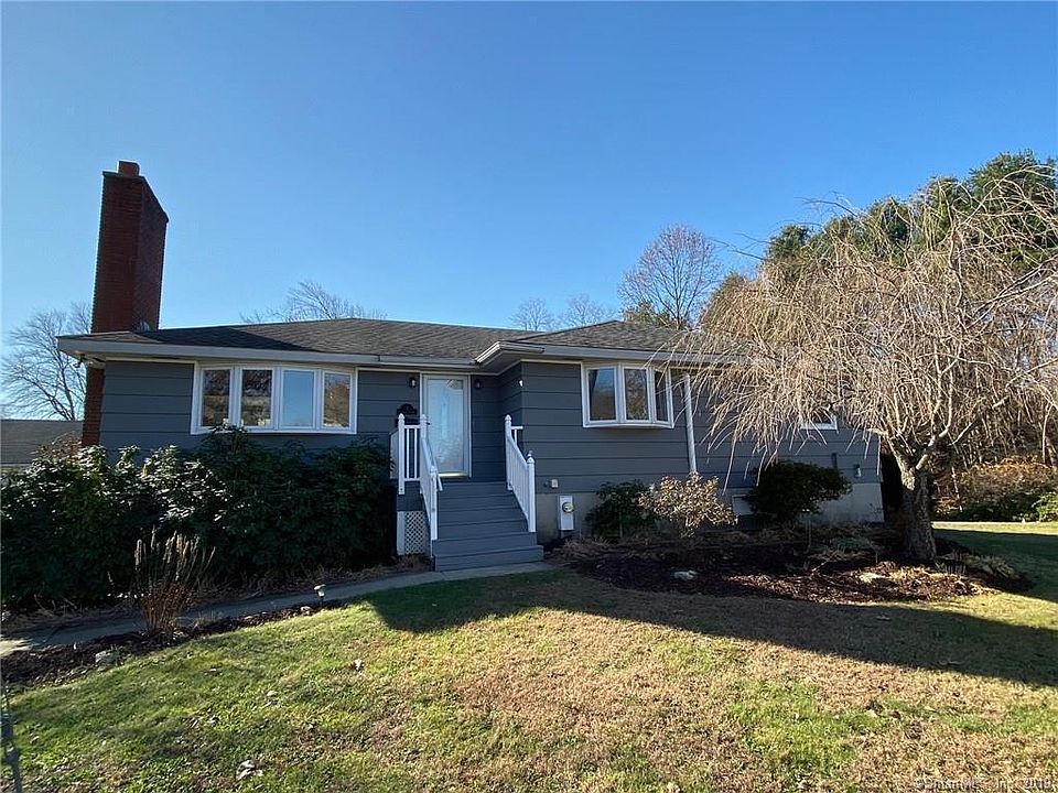 This centrally located custom built Ranch sits on a wonderful level lot and is so close to everything! The spacious main level features a tiled entry foyer with coat closet; large living room with stone fireplace and bow window; huge fully equipped sun filled kitchen with island, eating area, garden window, double french door to covered deck, Wolf oven & stove top, Sub Zero refrigerator and Asko dishwasher. Large family room with fireplace in basement, huge storage area and door to exterior. Beautifully refinished hardwood floors on the main level. Oversized detached two car garage with high doors. This home is just a short five minute drive to East Haven's beautiful town beach/playground/splash pad. It's the one that you have been waiting for so don't delay or you will miss out!