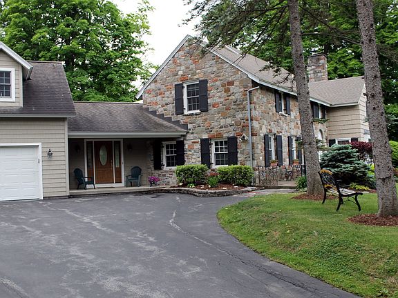Beautiful stone Colonial with over 3400 square feet on a private 1.4 acres with 5 bedrooms and 4.5 baths, installed all NEW windows, spacious NEW kitchen with wet bar and built ins. Formal dining room, living room with stone fireplace. Oversized two stall garage with full loft above...Come see this beautiful home!!