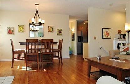 A TOTAL GEM! Move right in! Tasteful updates galore in this stylish, light-filled 2BR, 2BA+GA+POOL townhouse in walk-to-Metro North/Merritt 7 location. Unique (to Glenrock) flrpln and features. BR+BA on each level, most windows South-facing! MAIN LEVEL: LR w/vaulted clg, wd-burning FP+RARE HW floors, granite+S.S. kitchen, BR w/sliders to west-facing balcony, BA w/laundry. MASTER SUITE LEVEL: vaulted clg, his and hers (HUGE walk-in...works as an exercise room or private study) closets, fabulous new master bath w/skylit rain shower. Private, locked 12x7 storage room on lower level off garage. Interior stair links garage and storage room to private front porch entry overlooking nicely landscaped courtyard. See Addendum for $15K recent Improvements!