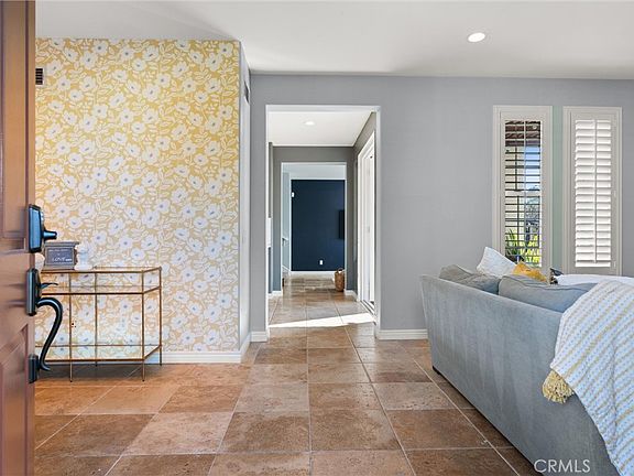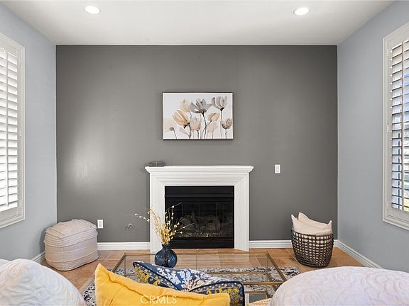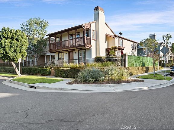 Excellent corner lot location next to Canterra plunge/park and 1 block to Ladera Elementary and Middle Schools. This 3 bedroom 2.5 bath townhome lives like a detached home. Formal dining room and living room with fireplace as you enter, entrances with an abundance of natural light. The kitchen has been upgraded with Quartz counter tops, stainless steel appliances and Shaker white cabinets. Primary suite is oversized and open with a vaulted ceiling, Plantation Shutters and a private balcony overlooking the park, great for morning coffee or afternoon wine/tea time. Primary bathroom has been updated with dual sinks, Quartz counter top, full subway tile backsplash, decorative tile floors, frameless, tiled walk-in shower, serene soaking tub and walk-in closet. Two secondary bedrooms are accented with Plantation Shutters and share the secondary bathroom which has also been updated with Quartz counters, full subway tile backsplash and decorative tiled floors. There is a convenient work space and laundry room with cabinets at the rear of the kitchen. Yard is oversized and features custom paver hardscape, fruit trees and patio cover. Garage has built-ins for storage and epoxy flooring. Notable features include: Tumbled Travertine floors throughout the downstairs, modern upgraded laminate upstairs, recessed lights, oversized crisp white baseboards, and ceiling fans. Enjoy the Ladera Ranch amenities such as parks, pools, club house, tennis/pickleball/ basketball courts, water park, dog park, skate park and award winning schools! The yearly community events will knock your socks off! Cox high speed internet is included in the HOA.