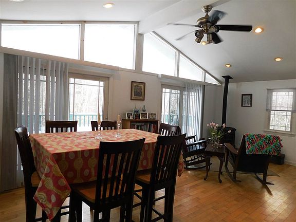 Spacious yet cozy chalet ( gutted to exterior & interior studs and rebuilt in 2002) with a touch of contemporary design! A beautiful living space on the second floor, directly under the magnificent cathedral ceiling, large windows and sliders giving access to the deck. The living room offers a propane fireplace to offer heat as well as provide fireplace ambiance. A fully equipped kitchen also on the second floor. The remodel in 2002 included new siding, Anderson windows, metal roof, birch floors, maple cabinetry, stainless steel appliances, whole house water conditioning & under counter reverse osmosis systems, radon mitigation system, as well as being wired for cable & high speed internet. This homes sits right between Stratton Mountain and Manchester, 15 minutes to either and just 10 minutes to Bromley!