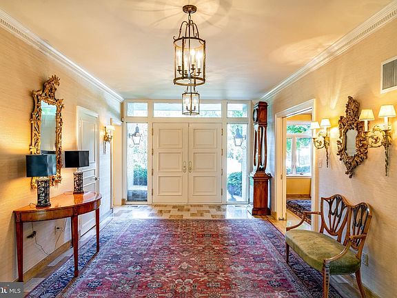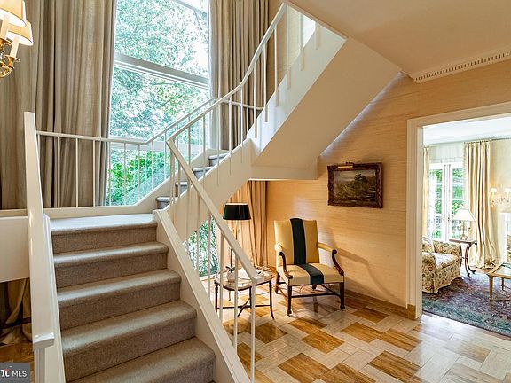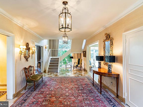 Elegant traditional architecture meets gorgeous mid-century modern detail to create this very special offering. Designed by renown modernist architects Berla and Abel, highlights include a floating staircase, two story windows overlooking a beautiful backyard, floor to ceiling flagstone fireplace, Sherle Wagner and Waterworks baths, Sunroom, wide plank hardwood floors, custom millwork... the list goes on. A sun filled entry foyer with custom moulding, floating staircase and two story windows leads to the grand living room with wall of windows and wood burning fireplace, gracious dining room, family room with wood burning fireplace, game area and wet bar, and formal powder room. The kitchen with breakfast room offers Viking and SubZero appliances and mid century modern stainless countertops and ample cabinetry. A mudroom, laundry room and 5th bedroom/private office and full bath complete this area. The upper level features a luxurious primary bedroom suite with wall of windows overlooking the backyard. A sumptuous dressing area with abundant closet space leads to a luxurious marble bath with Sherle Wagner fixtures, soaking tub and glass shower. 3 additional bedrooms and 2 newly renovated baths with Waterworks fixtures complete the upper level. The walkup lower level offers a bonus room/potential 6th bedroom suite with private family room and kitchenette, recreation room, exercise room and storage. Step outside to enjoy your own country club oasis! A heated indoor pool in separate heated pool house, tennis court, two changing rooms with full baths (tennis or swimming anyone?), multiple large patios for spectacular entertaining and lovely yard will delight you. Minutes to shopping and restaurants of downtown Bethesda, the Crescent Trail, METRO and DC.