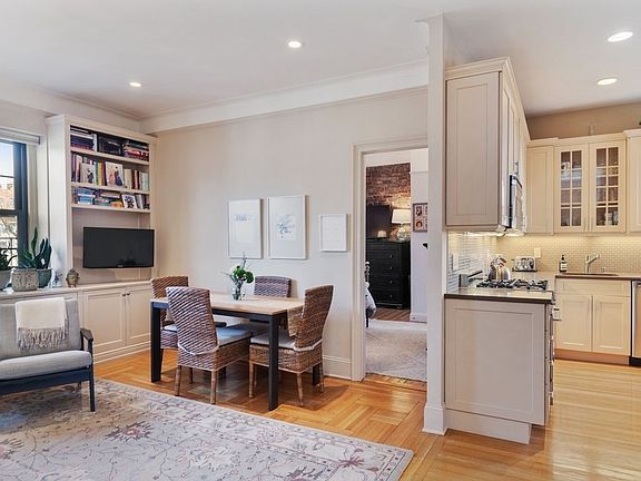 OPEN HOUSE BY APPOINTMENT ONLY. Please email the seller's agent for an appointment. Sorry, no access can be given without a previously scheduled appointment. This impeccably renovated, king-sized one-bedroom leaves absolutely nothing to be desired! One of the largest one-bedroom apartments in the coop, on the 6th floor of sought-after 2 Grace Court-- a wonderful prewar, full-service, elevator coop building in historic Brooklyn Heights-- the apartment gets lovely northern light through large casement windows, looking over the tops of the neighboring houses of Grace Court. A welcoming entry hall leads to the large, open living space which offers plenty of space for a dining area, and is stylishly framed by custom floor-to-ceiling bookshelves and cabinetry. The renovated, windowed kitchen offers fantastic work space and features custom solid-wood cabinetry with clever storage, Caesarstone counters, a glass tile backsplash, and stainless steel appliances including a dishwasher, a counter-depth refrigerator, and a Bertazzoni range and built-in microwave. The sizable bedroom features a charming exposed brick wall and a large walk-in closet, complete with a California Closets system. The stylish bathroom boasts a marble vanity and large tub. Throughout the apartment you'll find beautiful hardwood floors, crown and baseboard molding, high ceilings and custom window coverings. 2 Grace Court is a wonderfully maintained, pet-friendly building with a live-in super and part-time doorman. Building amenities include a lovely updated lobby, central laundry facilities, storage, bike rooms, a courtyard, a common garden where you can grow your own plants, and a magnificent common roof deck featuring spectacular panoramic waterfront views of the Statue of Liberty and Manhattan. Located at the end of a very special tree-lined, cul-de-sac street, one block from the Promenade and one block to Brooklyn Bridge Park, this apartment is conveniently located near multiple train lines, great shopping, restaurants, and everything Brooklyn Heights has to offer.