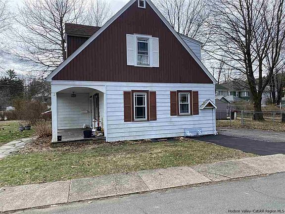 Charm and character abound in this 2 BR, 1-1/4 BA 1940's cape. The home is spacious and light filled with lots of room to garden and play outside. Updated kitchen and breakfast nook, new vinyl windows, new flue line in fireplace, new propane furnace in 2018. Large open living room with hardwood floors and brick fireplace. Nice sized dining room leads back to the kitchen. Second floor boasts two bedrooms with closets and storage space aplenty. Oversized Village lot with rear fenced area. Relax on the open front porch and take in the view of the Shawangunks. This property is close to Shadowland and Ellenville's famous Restaurant Row.