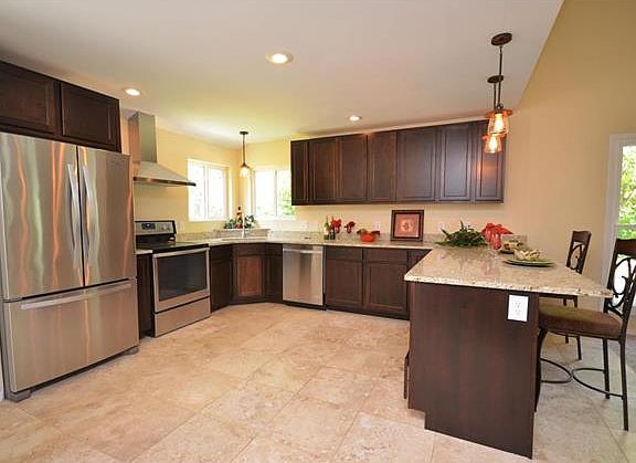 - Kitchen: Breakfast Bar, Custom Cabinetry, SolidSurfaceCounter