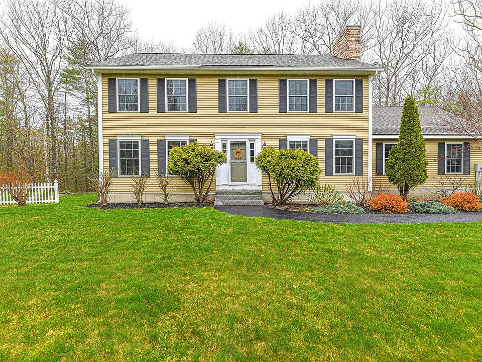 Welcome to this charming 4 bedroom 3 bathroom Colonial home located in "The Meadows" a sought after Brentwood neighborhood. Move in and enjoy entertaining! This well thought out floor plan boasts an open kitchen with new appliances, gas stove, granite countertops, an island to gather around, and has a sliding glass door that leads to a 24x25 gorgeous Trex deck with hot tub. The kitchen flows into a large family room with a gas fireplace one way and a designated dining area the other. Sliding barn doors allow privacy to the sun-filled front room which could easily be used as an office/playroom. There's also a 3/4 bathroom on the first floor too! Upstairs there's hardwood throughout, a charming hallway with a full bathroom and 4 bedrooms. Enjoy a large primary suite with a walk in closet and private full bathroom. There's more...Plan movie night in the huge finished basement with a projector and giant screen. All this, and this home is situated on a flat lot, in a cul-de-sac neighborhood and in the SAU-16 School District. Move in and enjoy all the Seacoast has to offer!