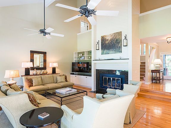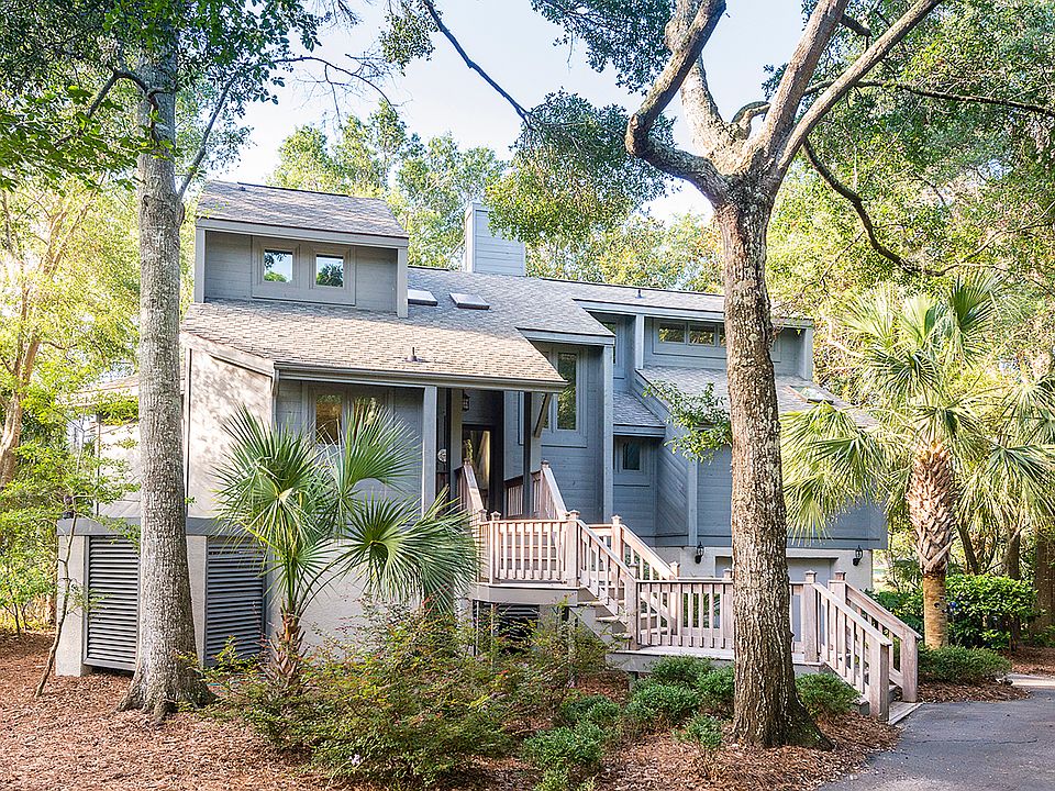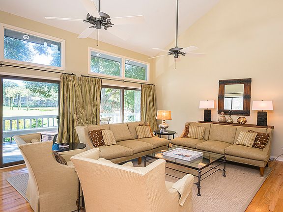 Within a five-minute walk to Kiawah's beautiful ten-mile beach and the forthcoming Cougar Point clubhouse, this home is situated near the Island's main gate and enjoys beautiful, long lagoon views of the golf course. Surrounded by graceful palmetto and oak trees, the home enjoys a wraparound back deck with panoramic lagoon and golf course views. The deck accesses the screened porch, living room, and master bedroom, and offers space for al fresco dining and bench seating. The screened porch features ceramic tile flooring, vaulted ceiling with fan, serene views, and wonderful cross breezes. Beautifully renovated, this home brings together honey-toned oak flooring, oversized and clerestory windows, sliding glass doors, moldings, shiplap detailing, recessed lighting, and timeless coastal casual furnishings, fabrics, fixtures, and finishes. The two-story great room with marble surround fireplace hearth features towering ceilings, custom built-ins, dual ceiling fans, and a wall of windows and sliding glass doors to the back deck overlooking the lagoon and golf course. A granite-topped wet bar and pass through distinguishes the great room from the formal dining room. Open and light-filled, the dining room's granite and shiplap-appointed sideboard with glass-front cabinetry adds beauty and function for serving and entertaining. The gourmet kitchen is both functional and beautiful. Fully equipped to fulfill every culinary wish, it features a sunny casual dining/entertaining island, custom glass-front cabinets, and upgraded appliances including a 6-burner gas range, granite center island with bar seating, polished granite perimeter counters, and tumbled stone backsplash. The master bedroom suite offers a soothing space that is separate from the other bedrooms and complete with its own private access to the back deck. The master includes a comfortable seating area, plus custom library shelving and an office with custom built-ins. The private en suite offers custom cabinetry, granite double vanities, stone-appointed floors, and shower with tub. Two additional bedrooms offer family and guests ample space and privacy, as well as balconies with unobstructed, yet private, Lowcountry views. Offered furnished, additional features of this move-in ready Island home include an alarm system, a one-car garage, character lighting in the front and back yards, and new landscaping with an irrigation system. Residents in this neighborhood enjoy easy access to West Beach Village, Freshfields Village, and The Sandcastle--the property owners' community and recreation center with private pool, outdoor bar and grille, stunning Atlantic Ocean views, and beach boardwalk.
