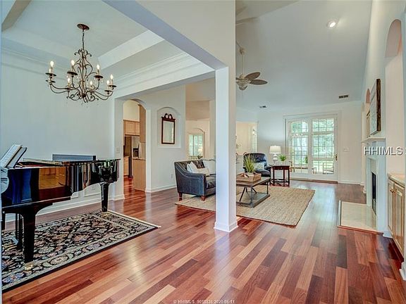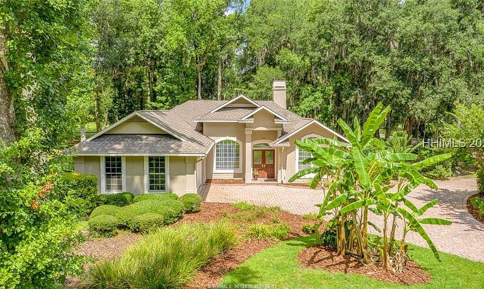 Perched on one of the largest homesites overlooking Bill Baker Park (0.69 acre) in Rose Hill, this perfect sized updated 3BR + office home w/ an open floor plan awaits. With double height ceilings, Brazilian cherry floors, plantation shutters, built-ins, this Rose Hill gem is move-in ready! Gourmet kitchen w/granite counters, newer SS appliances, tech center & dining area. Generous Master suite w/ glass shower, jetted tub & WIC. Take advantage of the Lowcountry lifestyle in the All season Carolina Room & HUGE fenced in backyard w/paved patio overlooking stunning live oaks. Newer HVAC(2017), Garage w/epoxy floors, paved drive, & so much more!