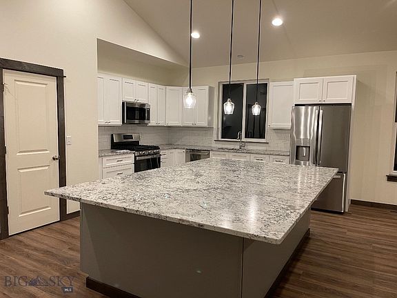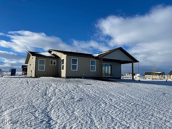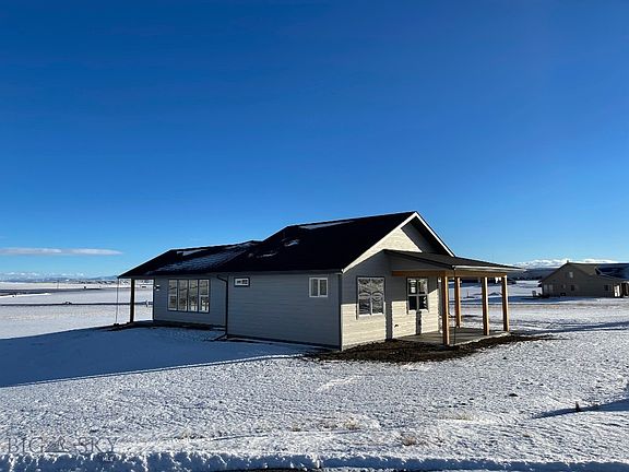 Thoughtfully laid out new build on 1.5 acres in Wheatland Meadows Subdivision. This 3 bedroom, 2 bath, 2 car garage located on a beautiful flat lot with awesome views of the Bridger Mountains, Gallatin Range, Tobacco Root Mountains & Elk horn mountains, boasts a open floor plan between the kitchen, dining area, living room, with 12' wide x 8' tall rear sliding glass doors with a great view. Kitchen has a large granite island, stainless steel appliances, soft close cabinet drawers & doors. A separate master suite, located at the rear of the home with a large walk in closet, tub, separate tiled shower, dual vanities w/ granite tops & tiled floor. There are two other bedrooms located at the front of the house, a second full bath. Just off the garage is a large mudroom/ laundry room, office area with barn door to close at the end of the day. Plenty of storage closets throughout, large windows to take in all the views Montana has to offer. Foundation was built on helical piers.