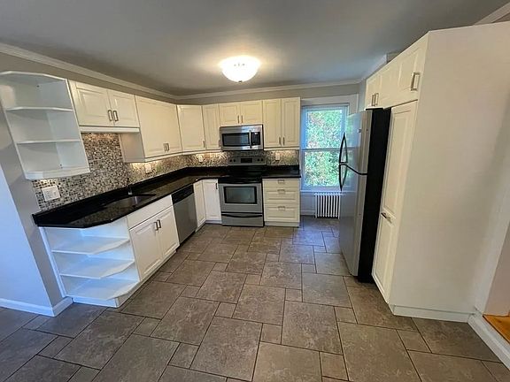 Welcome Home to 2 Grove Street in Natick. This 2 bedroom, 1 bath, 2nd floor unit features a large eat-in kitchen with custom cabinetry, granite countertops, stainless steel appliances and ceramic tile. The spacious living room with high ceiling boasts oversized windows beaming with natural light and hardwood floors. Both bedrooms are large sized with ample closet space and a full bath with storage closet complete this incredible unit. There's a private washer/dryer in the basement for exclusive use of this unit, additional storage space in the basement & large outdoor shed, lush grounds, beautiful patio and off street parking for 2 vehicles. All of this within the highly coveted Walnut Hill Section of Natick Center with close proximity to parks, restaurants, shops, farmers market, TCAN, The Commuter Rail, and all major routes! Schedule your private showing today. Rent includes water