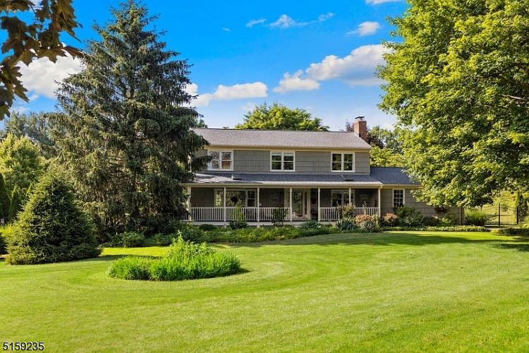 Center hall colonial with wrap around porch on magnificent, completely deer fenced, private grounds. Completely private, secluded in ground pool with pool house kitchenette, bluestone patio with shade arbor covered in wisteria. Grounds include sprawling lawn, specimen plantings, water feature gardens, beautiful wildflower meadow, and a woodland garden with Paw Paw patch. The Paw Paw tree produces the largest, native fruit in North America. Elegant brick patio under the shade of mature trees off the kitchen. The 4 bedroom home has a garden view from every oversized window. Refinished hardwood oak floors throughout. 3 brand new bathrooms and laundry room, neutral paint, clean painted basement used as an exercise room and a 2 car garage with side entry bay doors. New gas heat, roof and air conditioning in 2015. Location provides privacy with easy access to routes 202, 206, 78, 22, and 287. The serene, picturesque grounds are suitable for large scale entertaining. In fact, it has been a wedding venue for the last two owners! Absolutely move in condition.