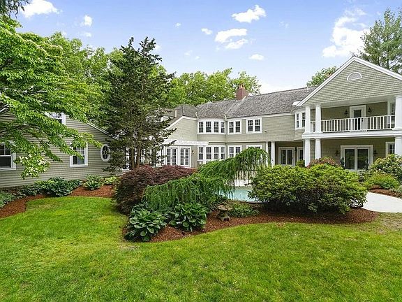 Exquisite Shingle Style home, superbly crafted by renowned architect Robert Stern, provides a sophisticated open floor plan with rich architectural details and extensive custom millwork designed for maximum utility, providing elegant spaces for grand entertaining and exceptional livability. The verdant, manicured grounds are an extension of every room enhancing the open feeling while taking advantage of abundant natural light.The heart of this home, is an inviting chefs eat-in kitchen with top of the line appliances & sizable granite island for family gatherings w/ graceful flow throughout the first level.The upstairs boasts 4 ensuite bedrooms, including two master suites & a separate fully equipped au pair suite.This versatile home offers exciting surprises: sauna,wine room, kitchenettes,cedar closets,expansive finished lower level for gym, theatre or play area. An amazing family retreat,only 10 miles from Boston, freshly painted & meticulously maintained, move in ready for summer!