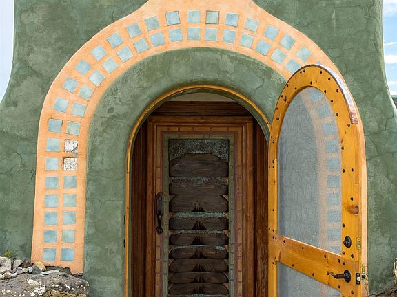 **Eco-Luxury Meets Modern Innovation in This Spectacular Earthship Home** Welcome to your sustainable sanctuary, where eco-conscious living blends seamlessly with modern comforts. This exquisite Earthship home offers a harmonious balance of tranquility, luxury, and cutting-edge green technology, set against the backdrop of unparalleled natural beauty. Built with a focus on sustainability, this Earthship home employs passive solar heating, cooling, and natural ventilation to maintain a comfortable living environment year-round. Lofty south-facing windows not only bathe the interiors in natural light but also enhance thermal efficiency. Experience true independence with a state-of-the-art off-grid system. The home features photovoltaic panels and wind turbines for reliable energy, backed by advanced battery storage. Water is sourced from rainwater by using a 3,000 gallon catchment systems, purified, and reused through a sophisticated greywater recycling setup. Constructed using recycled and locally sourced materials, the home s design includes earth-packed tires, cans, and bottles that form beautifully aesthetic, load-bearing walls. This innovative approach ensures structural integrity and reflects an artistic, organic aesthetic. Step inside to discover an open-concept living area with natural, handcrafted finishes that infuse warmth and character. Polished flagstone floors, custom woodwork cabinetry and doors, a stunning stained-glass door, custom tilework and colored bottle desgins throughout the house, and exposed wood Viga beams create a rustic yet refined ambiance. The kitchen is beautifully equipped, with an open-concept kitchen, dining, and living area equipped with energy-efficient appliances, sustainable countertops, custom cabinetry, custom tile work, and ample storage space. It's designed to complement your eco-friendly lifestyle while inspiring culinary creativity. The home features well-appointed bedrooms that offer privacy and comfort, complete with serene views and clever storage solutions. The primary bedroom is a spectacular circular design with a strategically placed skylight which allows you to enjoy the evening moonlight. The bathroom is a rustic spa-like haven, featuring water-conserving fixtures, natural stone, and artistic tile work throughout. Embrace the ethos of sustainable living with an indoor greenhouse that nurtures year-round organic gardening. Grow your own fresh herbs, vegetables, and even tropical plants, contributing to a healthy lifestyle and reduced carbon footprint. The surrounding landscape is thoughtfully integrated with the home design, offering an extensive patio area with an outdoor pizza oven and vibrant gardens. It's an ideal setting for relaxation, entertaining, and enjoying breathtaking sunrises and sunsets. Nestled in a serene, secluded area yet conveniently accessible to local amenities, this Earthship home provides the best of both worlds. Enjoy peaceful, nature-centric living with the advantage of nearby community resources and services. Outdoor activities such as hiking, biking, rafting, skiing, tennis, golf, and horseback riding are just minutes away. Shopping and dining are equally convenient. This Earthship home is more than just a residence; it's a statement of commitment to ecological responsibility and a testament to the possibilities of sustainable living. Don t miss the opportunity to own this masterpiece of green architecture and be part of the eco-revolution. **Schedule a private viewing today and embark on a new era of conscious, luxurious living.**. NOTE: Please see virtual tour link.