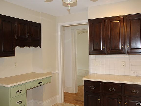 Lovely colonial just listed on a quiet neighborhood street. Features include a beautiful kitchen with Corian, tile floor, loads of cupboards, desk/workstation area, all appliances and pleasant eating area overlooking the back yard. Gorgeous formal dining room with hardwood floors. Spacious living room with gas fireplace. Four bedrooms, 1.5 baths and central air as well as a full attic. Basement includes workshop area, bonus room and fruit cellar. Furnace new in 2018. One bay detached garage, blacktop drive, and rear patio. Incredible enclosed front porch.