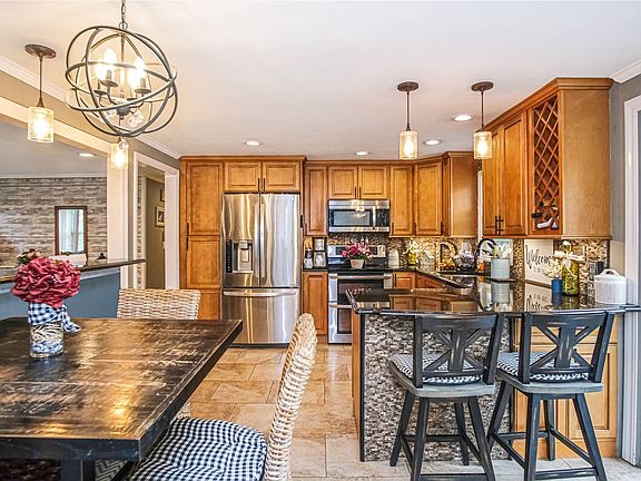 Beautiful 3Br 2Fbth spacious ranch with farmhouse style touches, updated kitchen (2015) with stainless steel appliances, granite counter tops, stone backsplash, wine cooler, dining room has sliding door that leads to a screened in porch, living room with electric fireplace, den with wood burning stove (not completed), updated bathroom (2018) with laundry area, master bathroom (2016), master bedroom has 2 closets, boiler & oil burner (2007), roof (2017-single layer) with warranty, owned solar panels, rear windows (2016), hot tub, deck to entertain