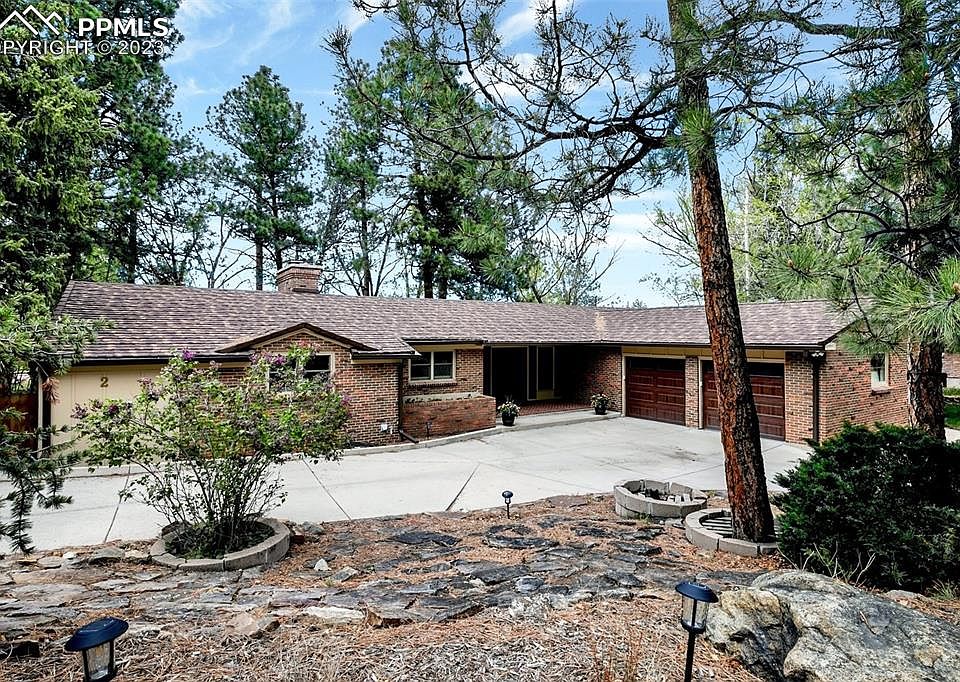 Rare opportunity to be situated in this lovely, quiet, desirable Broadmoor location. 5 bedroom Ranch home with main level master. Hard wood floors! Updated kitchen with 3/4" granite & solid cherry cabinets, updated deck, updated Pella windows and doors. Main level wet bar with wine fridge 2018. Roof 2020. 3 bedrooms in the basement with a family room, game area & wet bar with a walkout to the back yard. A/C split unit system. Storage room! Almost a 1/2 acre lot with a babbling brook through the back of the property. Walking distance to The Broadmoor, Cheyenne Mtn Junior High and Cheyenne Mtn High School. Over 20 Ponderosa Pines provides an oasis in the city!