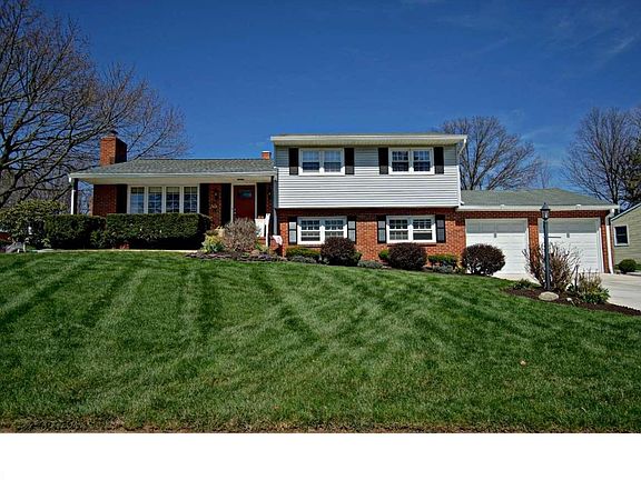 Large Hillwood Manor split level home sits on a generous corner property. New entrance door leads to the tiled hall and flows into the living room with gas fireplace. The hardwood floor extends into the formal dining room with chair rail and bay window. The over sized eat-in kitchen is a focal place for gathering with abundant raised paneled maple cabinetry and updated appliances. A few step down leads to the family room with door to the attached two car garage, fourth bedroom/office plus full shower bathroom/laundry room. A rear door leads out to a private fenced back yard with double level decks and mature plantings. From the family room a few steps down has access to the partially finished basement for additional living space. The upper level has three bedrooms with the master having double mirrored closet and half bath, plus additional full hall bath. Freshly painted and beautifully maintained this home shows pride of ownership. Just move in and enjoy.