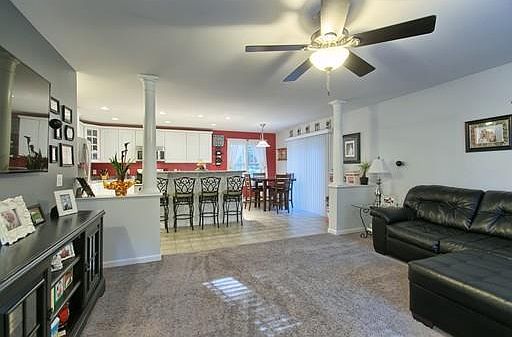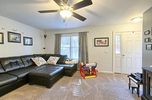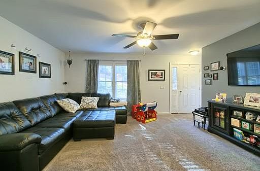Welcome Home! This 4 year young home has been well cared for, updated and waiting to be yours. Comfortably set on a lovely corner lot this welcoming floor plan is open and bright. Main level offers spacious family room with ceiling fan, plush carpeting, and surround sound. The beautifully designed columns offer a nice break in the floor plan to the eat in kitchen. Center, two-tier island with space for seating. Stainless steel appliances, several cabinets, and recessed lighting. Master bedroom with large walk in closet could be used as a home office or guest bedroom. Second bedroom and large bathroom complete the main level. Lower level is finished, perfect for a movie theater, play room, or office. Offering beautiful carpeting, recessed lighting and a fun slide! Other half of lower level is a beautiful laundry and mud room with access to back yard and garage. Extra space is currently being used as a home gym.