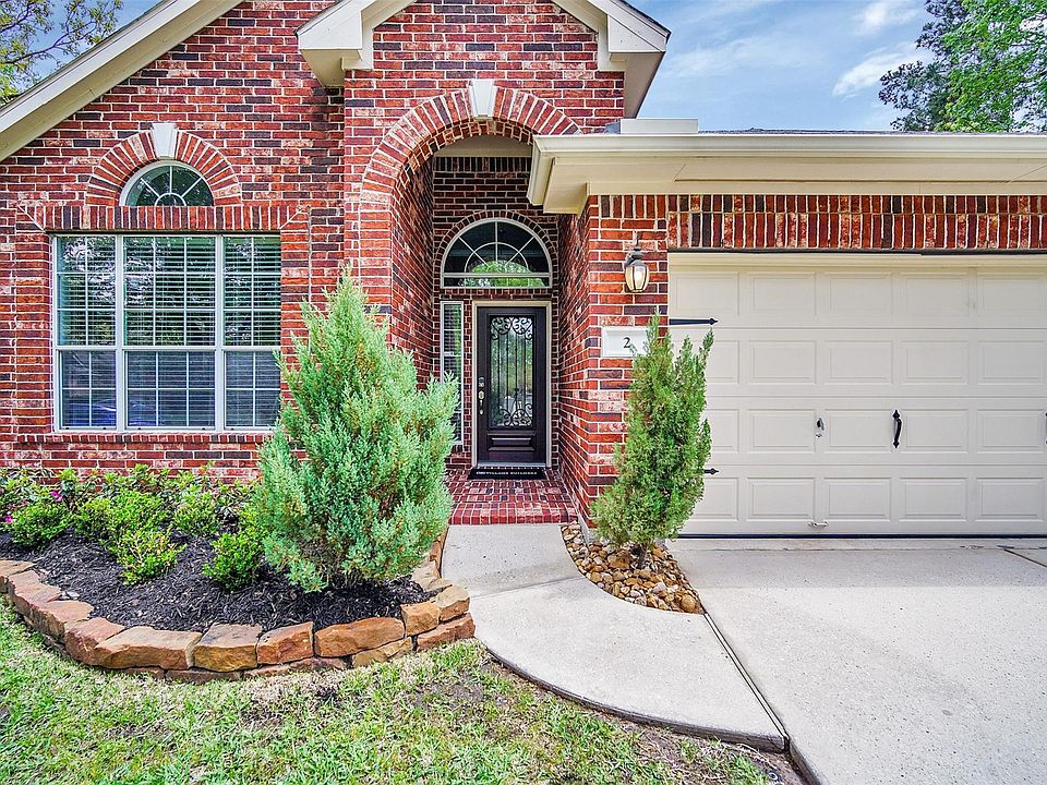 BEAUTIFUL 1-STORY BRICK LENNAR HOME IN THE HEART OF THE WOODLANDS***ORIGINAL OWNER***3 BEDROOM/2 BATH/2-CAR GARAGE ON A QUIET CUL-DE-SAC. Spacious open floor plan with corner gas log fireplace and high ceilings; great views to the backyard. Island Kitchen includes a Breakfast Bar as well as a Breakfast nook. Easy access from the Kitchen to the formal Dining Room provides ease of entertaining. Stainless Steel appliances and custom backsplash complete this well-appointed Kitchen. LARGE Primary Bedroom suite has been lovingly updated with custom wainscoting, granite counter tops and has a beautiful tray ceiling feature; Spacious en-suite bath. GREAT epoxy-flake custom flooring in garage! Patio has been extended adding additional outdoor entertaining space with a continuous wrap-around sidewalk leading to yard's gate. Spacious in-house laundry room. Quiet community in the Village of Sterling Ridge; close to hundreds of amenities, parks, trails; nature galore! **NEW ROOF COMING SOON**