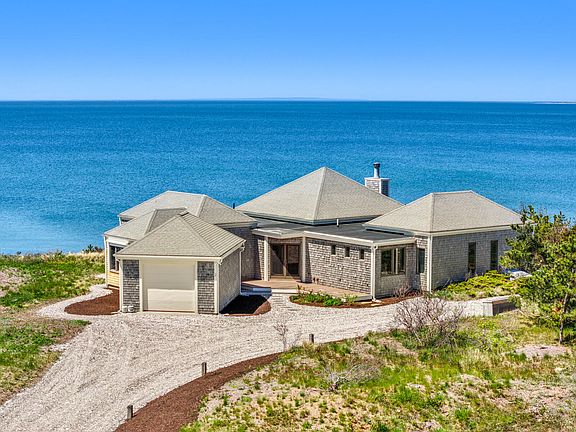 Introducing 2 Heron Lane in the highly sought after Shearwater neighborhood of Truro. Featuring panoramic views of Cape Cod Bay, magnificent sunsets, and a private beach, this four-bedroom home is the ultimate coastal retreat. The open-concept layout seamlessly flows from living and dining spaces to the adjacent kitchen, with sliding glass doors along the waterside of the home that frame the surrounding natural beauty and open to a large wraparound deck. From there, a boardwalk leads to a viewing platform and a perfect sandy beach below. Thoughtful details abound throughout the single-level floor plan, including vaulted ceilings, automatic rolling storm shutters, and a grand fireplace at the heart of the home. An association tennis court just around the corner completes this offering, located 10 minutes from the restaurants, shops, and galleries of Provincetown and 20 minutes to Wellfleet Village.