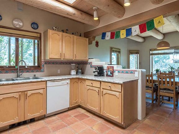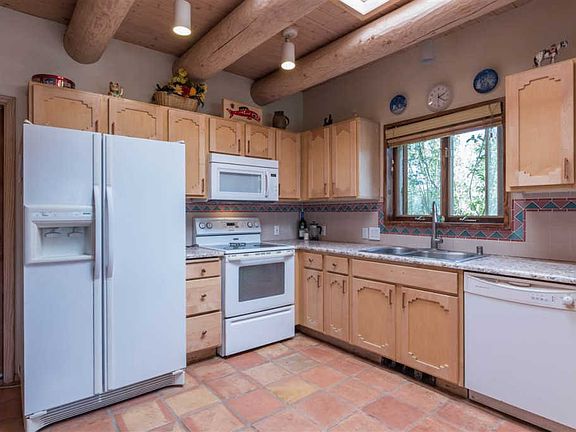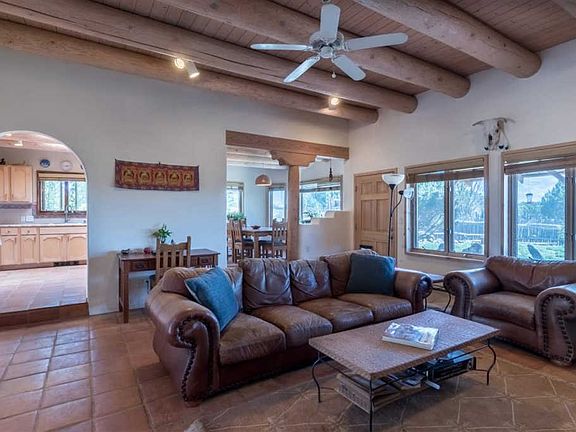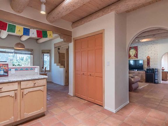 Kiva fireplace, exposed and painted Adobe accent walls, vigas, beams, nichos, spirit walls, Saltillo tile, clerestory windows, Value and Views! Plus Two Expansive Brick Patios, a detached garage, carport, walled courtyard, and a Studio or work room with Separate Entrance. This light, bright and cozy 3 bedroom , 2 bath home has it all! Great cul de sac setting too! What more could you want? Eldorado is home to acres of wilderness area, miles and miles of hiking and bike paths, summer time pool, stellar K-8 school, senior center, library, local dining shopping, gym, and more. All of this and only about 20 minutes to The Santa Fe Plaza!