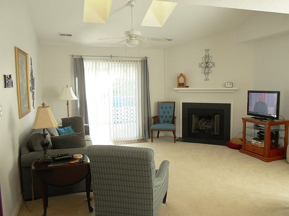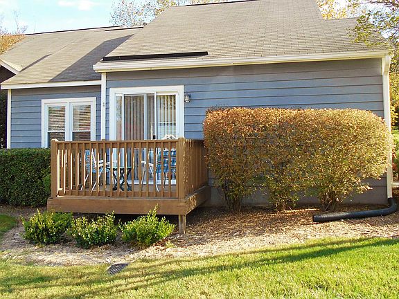 Move in ready end unit one story town home located in Woodcroft features 2 bedrooms with walk-in closets and 2 full bathrooms. Vaulted ceilings in the living room with gas log fireplace and access to patio. Kitchen and breakfast room feature updated flooring with access to the deck for morning coffee. All appliances included with brand new washing machine. Replacement windows and sliding doors throughout the home. Exterior is maintained by the HOA as well as the landscaping for easy living. Enjoy the walking trails and all the amenities Woodcroft has to offer.
