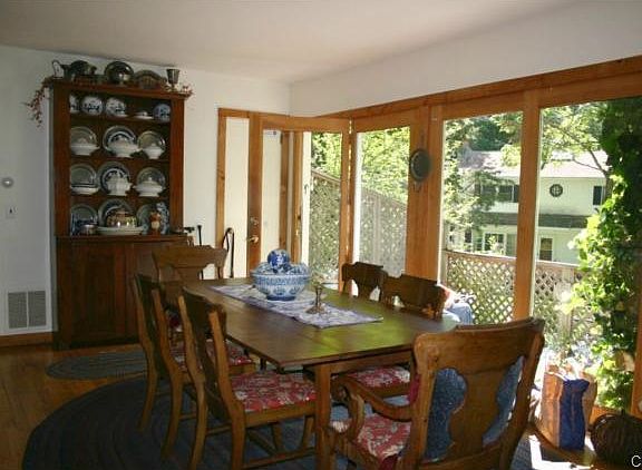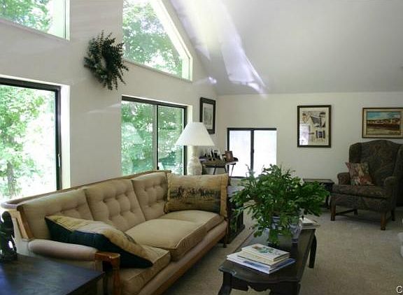 Charming ranch, bright, open floor plan with views of Fox Hill Lake. Large eat-in kitchen with cathedral ceiling, skylights and sliders to deck. Large master with full bath and cathedral ceiling. Dining room with fireplace/wood stove, living room with cathedral ceiling and large windows. Add your personal touches to this hidden treasure.