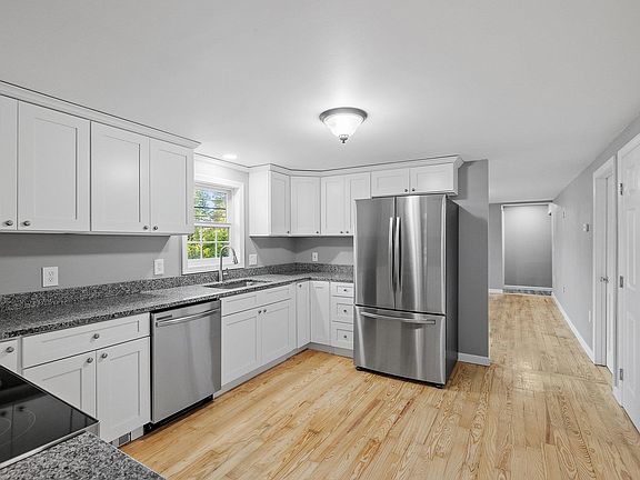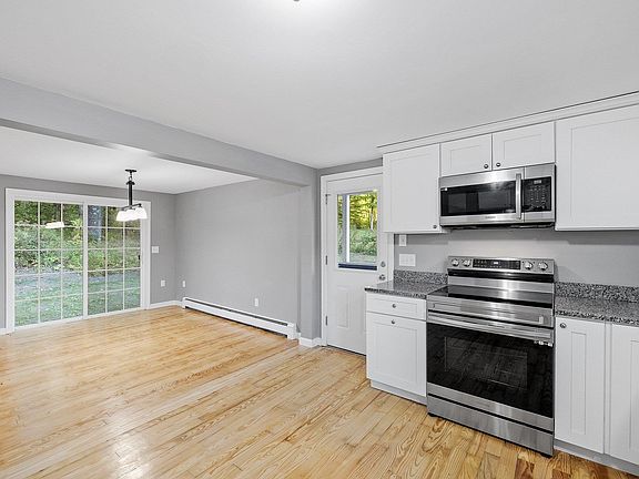 Great opportunity to own this beautifully renovated three-bedroom, one bath Ranch! Updates galore, everything is done for you, just move in and live in this home that is as close to a new build as you could get! Warm and welcoming kitchen with shaker style cabinets, granite countertops, stainless steel appliances and direct access to the porch. Spacious dining room that puts graciousness into dining, with great natural light, wood floors and glass slider to the back yard. Inviting living room radiates hospitality and charm. Full bath with new toilet, sink, tub, and stackable washer and dryer. Primary bedroom with decent size closet, two additional bedrooms with closet space. Porch is great for entertaining or to simply enjoy. Full basement with double walk outdoors to allow easy access for storage or lawnmowers, etc. Some of the brand-new items include, three-bedroom septic and leach field, siding, asphalt shingle, electrical upgrades, kitchen, bath, some new sheetrock, vinyl flooring and refinished wood floors. This home is a must see to appreciate everything that was done! Great commuter location and close to all central NH and Lakes Region amenities. Delayed Showings, first showings at the Open House on Saturday October 8, Noon-2pm.