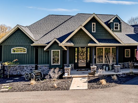 Architectural designed Ranch house (5 years young) rests on 5 acres with pond. HW & tile floors throughout. Gourmet KIT w/quartz counter tops. Custom patio w/stone fireplace. Walk out Basement. . Picturesque setting with Gazebo looking over pond.