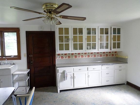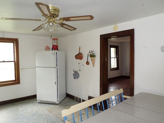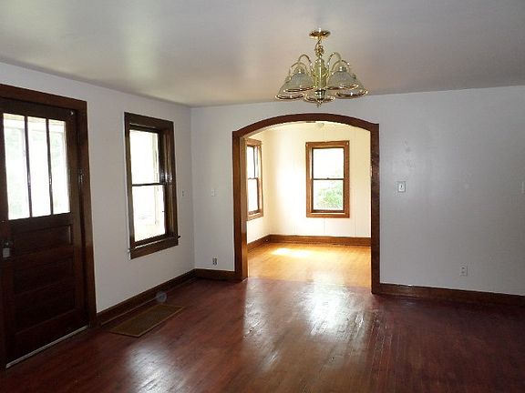 1.5 story, 3 bedrooms, 1 bath, 2 car detached garage, hardwood floors, large eat in kitchen, huge hard, quiet street, first floor bedroom, bath and laundry