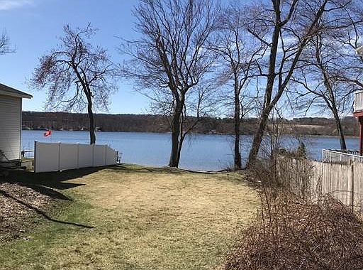 Don't miss out on 2 Hill Road with deeded beach rights to Fort Meadow, a 260 acre recreational lake with boating, fishing and swimming. This home sits directly across the street with unobstructed water views. Vacation at home with your own piece of paradise! First floor offers cathedral ceiling family room with walls of natural light, eat in oversized kitchen loaded with cabinets and a fireplace, 2 bedrooms with water views and a full bath. Expansive finished lower level with additional bedroom/play area/home office/exercise room, full bath and potential au paire suite??? all this on an oversized lot with 2 sheds! Updates include: interior paint, new plank flooring in most living space, new carpet, new recessed light and ceiling in lower level!