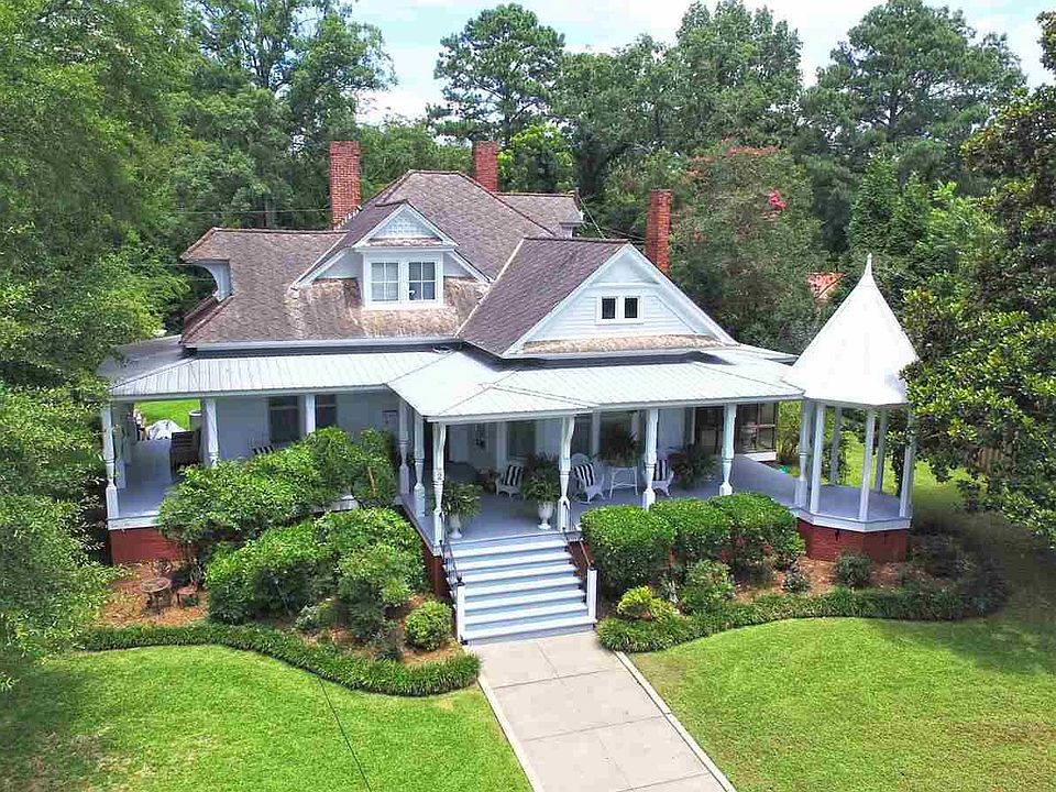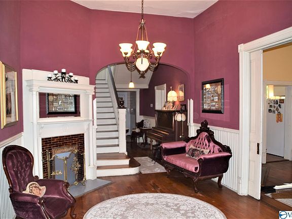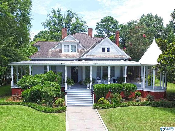 Stunning Victoria home (Circa 1892) located in Gadsden, Alabama; Beautifully preserved from its earliest years of statehood. The grand splendor of this gorgeous home boasts 4BR/2BA nestled on a beautifully landscaped lot. This home feat a wrap-around porch, dormers & turret that cantilevers out from the front porch; 5 fp, 3 w/beveled glass mirrors, wainscoting, ornate fp cover, slate roof, rosette molding, cellar, transom doors, large entry door, 12ft ceilings, orig hdwd floors, pocket doors & built-ins. Formal DR, LR, Kit w/ b-fast bar. Main level Mstr BR, main BA has claw-foot tub, vintage light fixtures; 1 large BR upstrs; Priv fence, 3 det bldings; deck w/firepit; screened porch.