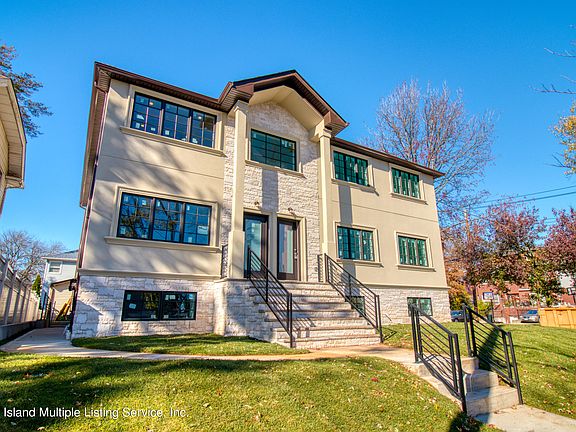 New construction two-family in Eltingville, on large 60x100 corner lot. Home boasts close to 6000 square feet of a beautifully layed out open floor plan. Each unit features 4 large bedrooms and 3 full baths, including a master bathroom in each unit. Each unit also features an oversized walk out basement, that has its own full bathroom, as well as separately zoned Mitsubishi a/c units making it perfect for extended or large families. There is also two garages one detached and one built in, fully equipped with an electric car charging station. Builder didn't leave any details out with additional features including, High end Jeld-wen windows, natural stone front with stucco, 600 additional square feet attic space in upstairs unit. This is a rare find and won't last long, make your appointment today to see for yourself!