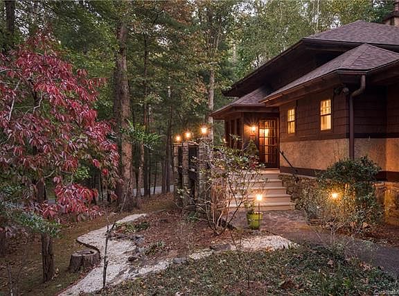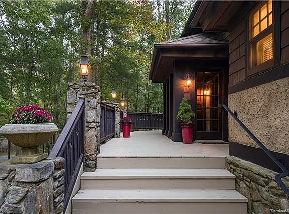 Main Level Living showplace combines artisanal elegance and modern livability in an exceptional single-level floor plan. The glassed-in atrium foyer opens to gathering and dining spaces featuring a hand-carved fireplace, hand crafted woodwork, herringbone floors and artistically finished Lincrusta wall coverings. Continuing around the home's core, a gorgeous two-story stone hearth anchors a contemporary chestnut floored keeping room with adjacent screened porch. An expansive cook's kitchen with innovative storage, quartz counters, and stainless steel appliances (that include a five burner gas cooktop, double ovens and a wine cooler) extends into the breakfast area. A private light-filled owner's suite adjoins a private rear patio. On the opposite end of the house are three additional bedrooms with attached baths. In front, French doors access the vast wraparound deck overlooking the 1.37 acre forested corner lot. Conveniently, this home is walking distance to the Blue Ridge Parkway.
