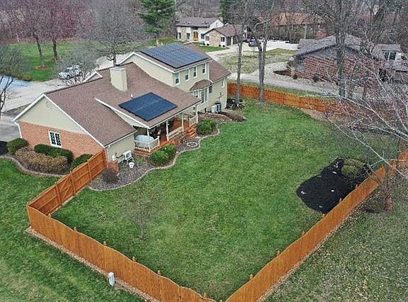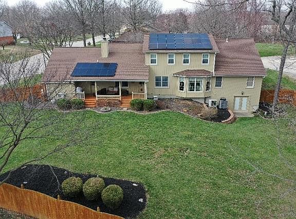 Executive Cape Cod 1.5-story offers 4 BR and 3 BT with lots of great features on a corner lot!! Beautiful entry foyer leads to sunken LIV RM with large bay window and Study. Nice Formal dining room, too. Gourmet KIT features solid surface counter and back splash, stainless appliances, breakfast area and 7' breakfast bar, all open to family room. FAM RM boasts Cathedral wood ceiling, built-in book shelves and fireplace. Main floor Master BR features 2 walk in closets and private bath with dual vanity, 6' tub and separate over-sized shower. Upstairs you will find 3 more BRs with large closets and full bath w/double vanity, skylight & laundry chute. Large covered back porch has built-in seating and leads to the beautiful yard w/6' wood privacy fence. Walkout BSMT offers another FAM RM with a dry bar!! Rec room in lower level opens to patio.Great for entertaining! Main level laundry room has shelving & laundry chute. Zoned HVAC, Security System & solar panels- Avg elec $87/mo AHS HPP