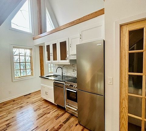 Fully renovated 3rd floor apartment in chic Art House building centrally located to shopping and highways. Brand new kitchen and bathroom, high ceilings naturally sun lit. Two huge closets and loft space for extra storage. Hardwood floors throughout. This amazing building offers a Zen common area equipped with wet bar and microwave for an extra living room feel on 2nd floor, and a large conference room on ground floor available to be reserved for outside of office meetings with business hub room. Art House building boasts artistic vibes and a cozy ambiance, perfect place to come home to and relax. Island in kitchen area to be installed under beam with seating on both sides. Door to bedroom is installed.