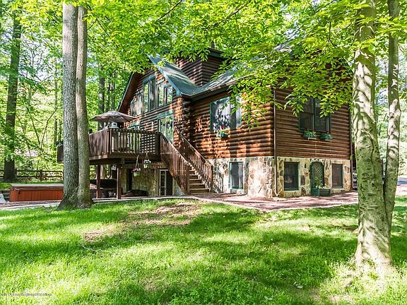 If your looking for a getaway but want to live local you found it! Beautiful log cabin home which is updated and is on a wooded 5.3 acre lot in Cream Ridge. Endless opportunities here for a farm, horses, hunting or if you just want privacy. This property is stunning! Huge detached garage. Home has 3 bedrooms with 2.5 bathrooms, open floor plan, nice mud room with a pantry, a finished walk out lower level which provides almost an additional 1,000 sqft of living space and of course a wood burning stove that can heat the whole house if you choose. Exterior has multiple decks, patios and a fire pit. Home is a must see! A brand new Timberline roof was installed in 10/2019. Home also comes with a 1 year home warranty.