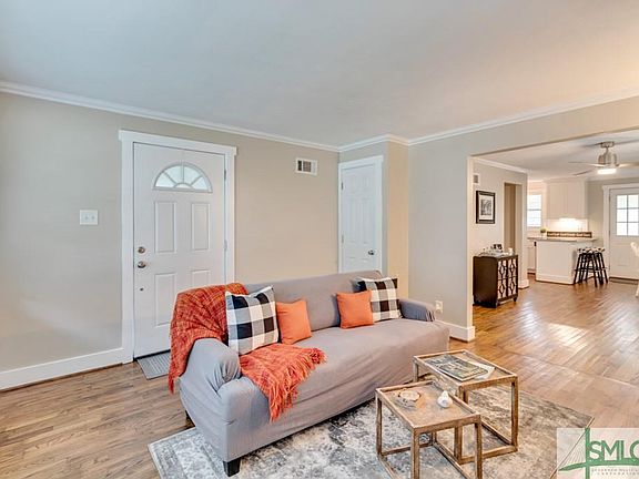 Renovated and move in ready! ASK US ABOUT OUR 3D VIRTUAL TOUR OF THIS HOME! This adorable 3 bedroom/1 full bath home has an open floor plan with gorgeous oak hardwood flooring and crown molding throughout. Relax after a long day on the screen porch overlooking a private fenced backyard. Updated eat in kitchen featuring granite countertops with breakfast bar, stainless appliances with gas cooktop, newer cabinetry with LED under cabinet lighting, and tile backsplash. Large closets in all bedrooms. Newer double sink vanity in the bathroom with tile in the shower and floors. Attached carport. Tankless energy efficient gas water heater. No HOA and not in a required flood zone. Great location, close to I-95, the Ports, Gulfstream, and historic downtown Savannah!