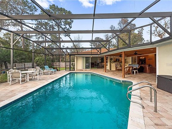 Resting on an oversized lot on a cul-de-sac in Sleepy Hollow this 3/2.5 with office/sitting area pool home boasts 2,400+ sq ft & an open concept design! Upon entry, you are greeted w/a large sunken great room with sliders showcasing your private and screened inground pool & fenced yard! To the left, you will find your 4th bedroom, doubling as a home office as well as your master bedroom. The office has built in floor to ceiling shelves, large windows, & is located near a half bath. The master is large and houses a bathroom w/access to the pool & walk in closet. Master bathroom has new cabinets and granite, shower, and upgraded mirrors that light. On the other side of the home, you will find 2 bedrooms,family room,utility,& kitchen. Kitchen has views of the family room and pool deck! Its open & has ample counter space,2 pantries,& more storage than one can fill! View of the pool and great room from the kitchen. The two add'l bedrooms share an upgraded guest bath that will impress with the upgraded tile & granite & the high-end light that plays music while you shower! Bedrooms have deep closets & natural light. The most impressive part of this home is both living rooms feature sliders that pocket completely, perfect for that beautiful FL breeze. The porch ceiling is upgraded with cedar tongue and groove wood. Also, located close to i4, food, great schools, shops, and even has its own Private Park-exclusive to this neighborhood. Add'l features include indoor utility room that houses the w/d, & new windows!