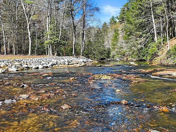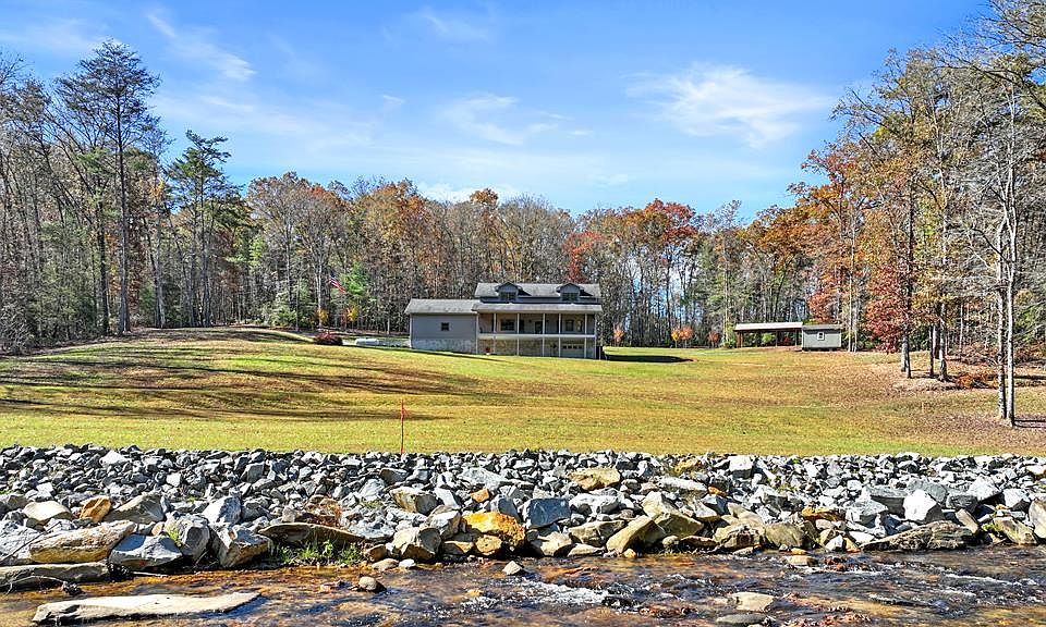 Noisy Fightingtown Creek front property! Beautiful approach into the property. This property presents exceptional potential, boasting 90' feet of pristine Fightingtown Creek frontage. Welcome to lot 2 Hudson Hollow where clear, rushing waters teem with trophy trout. Set on nearly two acres , the land blends open pastures with wooded areas, creating a scenic and versatile landscape. This 3-bedroom, 3.5-bathroom home is conveniently located near Blue Ridge and McCaysville, offering easy access. Built for durability, the home features 50-year architectural shingles, 2x6 insulated exterior walls, Andersen windows, a 400-amp electrical system, and hard-wired security cameras. The main floor showcases soaring 10-foot ceilings, with 9-foot ceilings on the basement and upper levels. Inside, spacious bedrooms with walk-in closets complement a high-end kitchen, washers and dryers on each floor, an 80-gallon air compressor, hose and drop cord reels, a large safe, and a generator. This property is a blank canvas ready for your vision—whether you're an investor, seeking a serene retreat, or looking for a full-time residence, this is A DO NOT MISS!